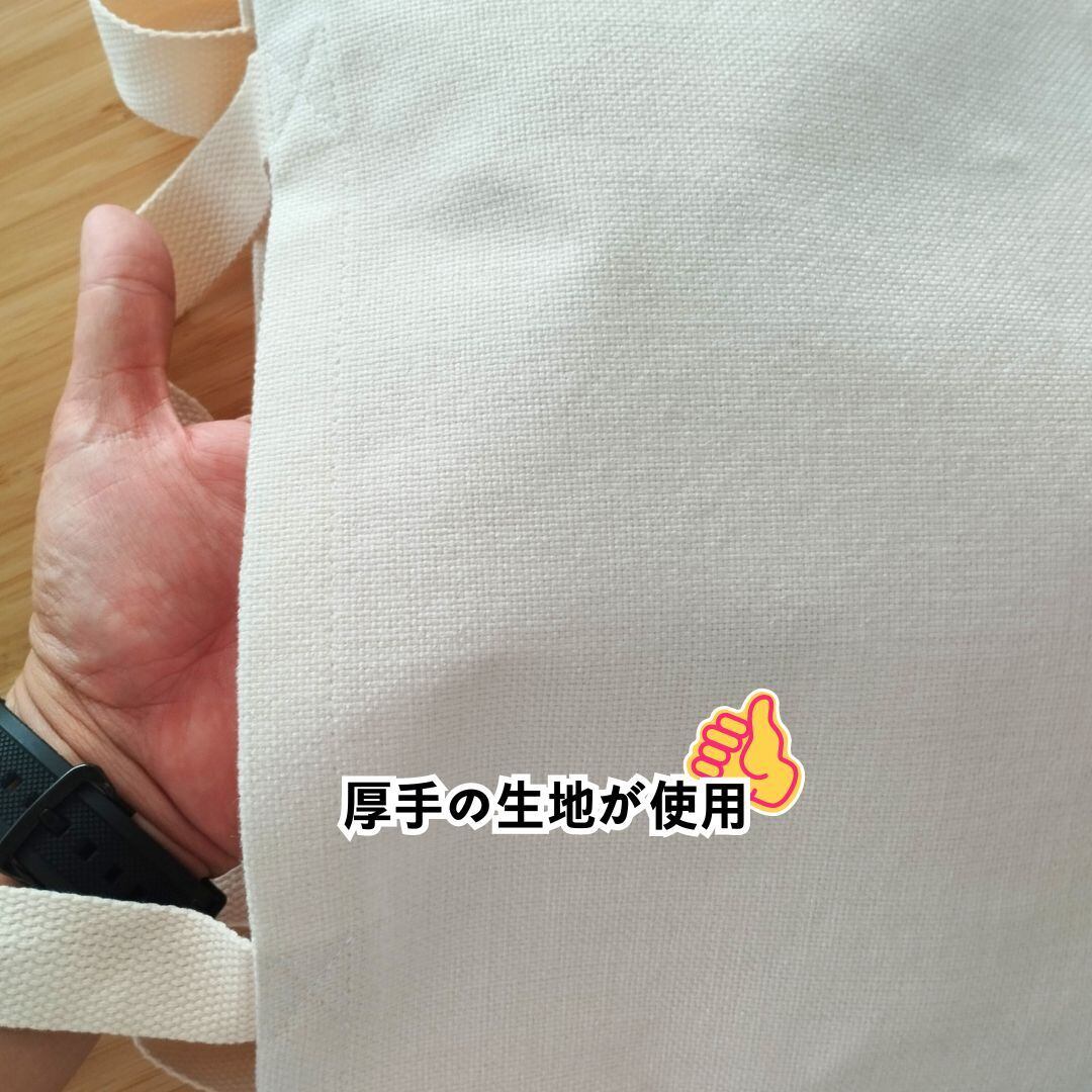 スタイリッシュなデザインのトートバッグです。厚手のコットン生地を使用しており、丈夫で長持ちします。サイズは330x390mmの大きめサイズで、収納力抜群です。